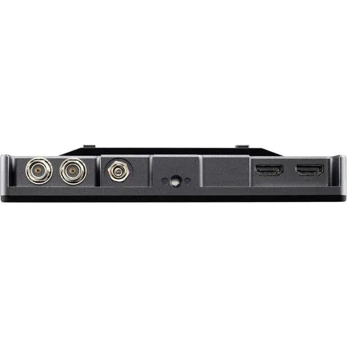 The INDIE 7 is powered using the included L-series battery plate or using the 2mm barrel input with a DC adapter. It can also be powered using separately available Gold mount or V-mount battery plates. An SD card slot allows you to import custom 3D LUTs and a micro-USB port to provide upgrades to the display. Four 1/4"-20 threads allow you to mount the monitor in a variety of configurations. The 3.5mm headphone jack allows you to monitor the embedded audio from the HDMI or 3G-SDI inputs.