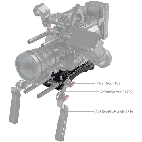 Use the Shoulder Pad Pro from SmallRig to quickly switch between handholding your cinema camera and mounting it on a separately available VCT-14 tripod adapter plate. The Shoulder Pad Pro features a durable aluminum baseplate, and a comfortable, integrated silicone shoulder pad allows you to handhold your camera for long periods. The baseplate features include front and back 15mm LWS rod support, ARRI-style rosettes on both sides, and multiple 1/4"-20 accessory threads. The bottom of the plate features a V-lock-style VCT-14 wedge to mount onto an optional VCT plate.